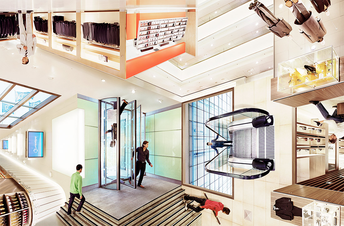 The men's department showing stylisch suits, clothing, liquors and to finish it with exclusive watches and fashion accessories.
