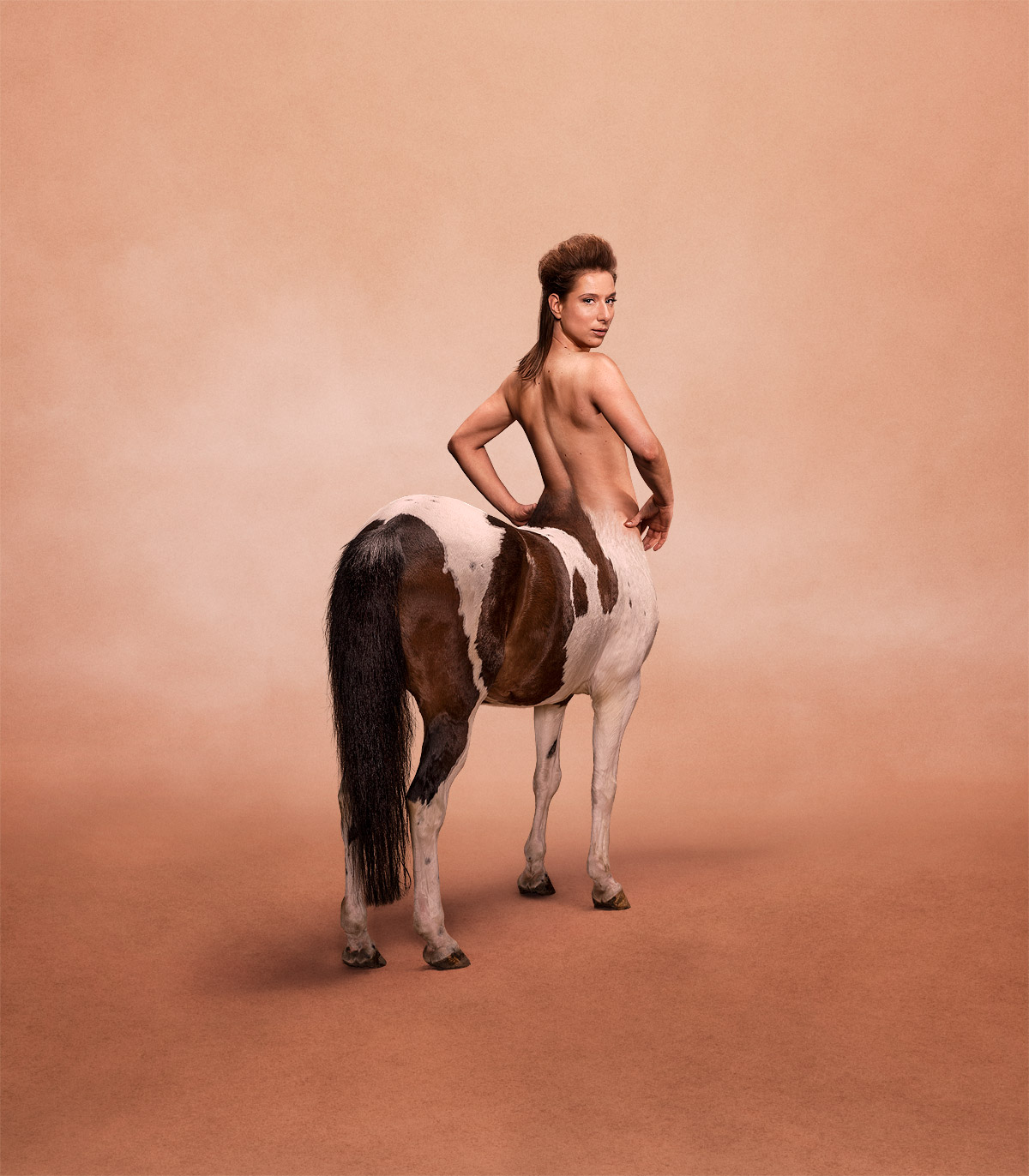For Senf Theater Partners new campaign we had to create some centaurs. Mark did photograph the ponies and models in the studio, afterwards in Photoshop we merged both human and pony into one look and feel. The models are: Alex Klaasen, Freek Bartels, Jip Smit and Daniël Cornelissen.
